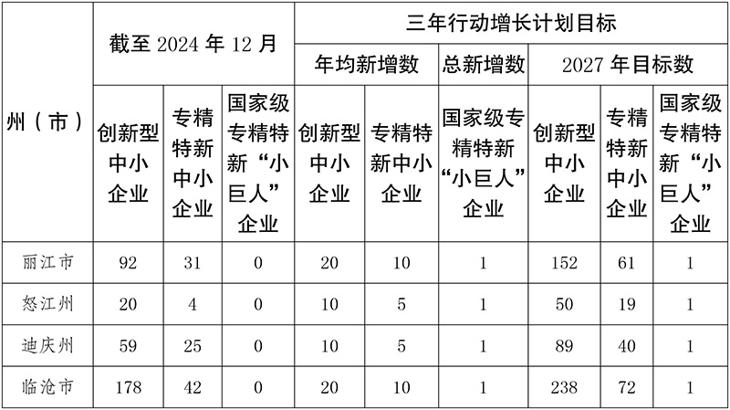 云南省专精特新企业倍增三年行动计划