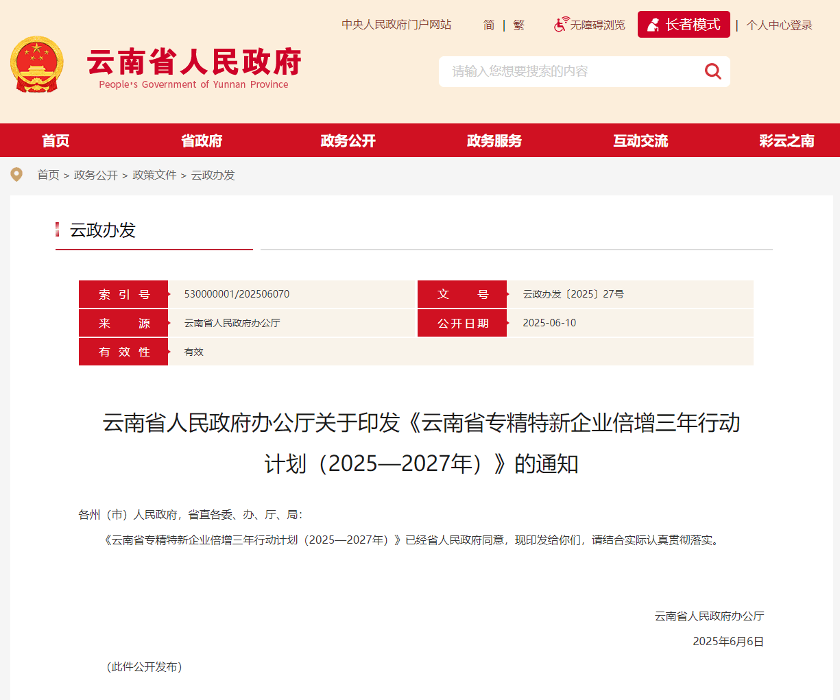 本行动计划自发布之日起实施,2023年9月28日印发的《云南省人民政府办公厅关于印发云南省专精特新企业培育三年行动计划(2023—2025年)的通知》(云政办发〔2023〕41号)同步废止。