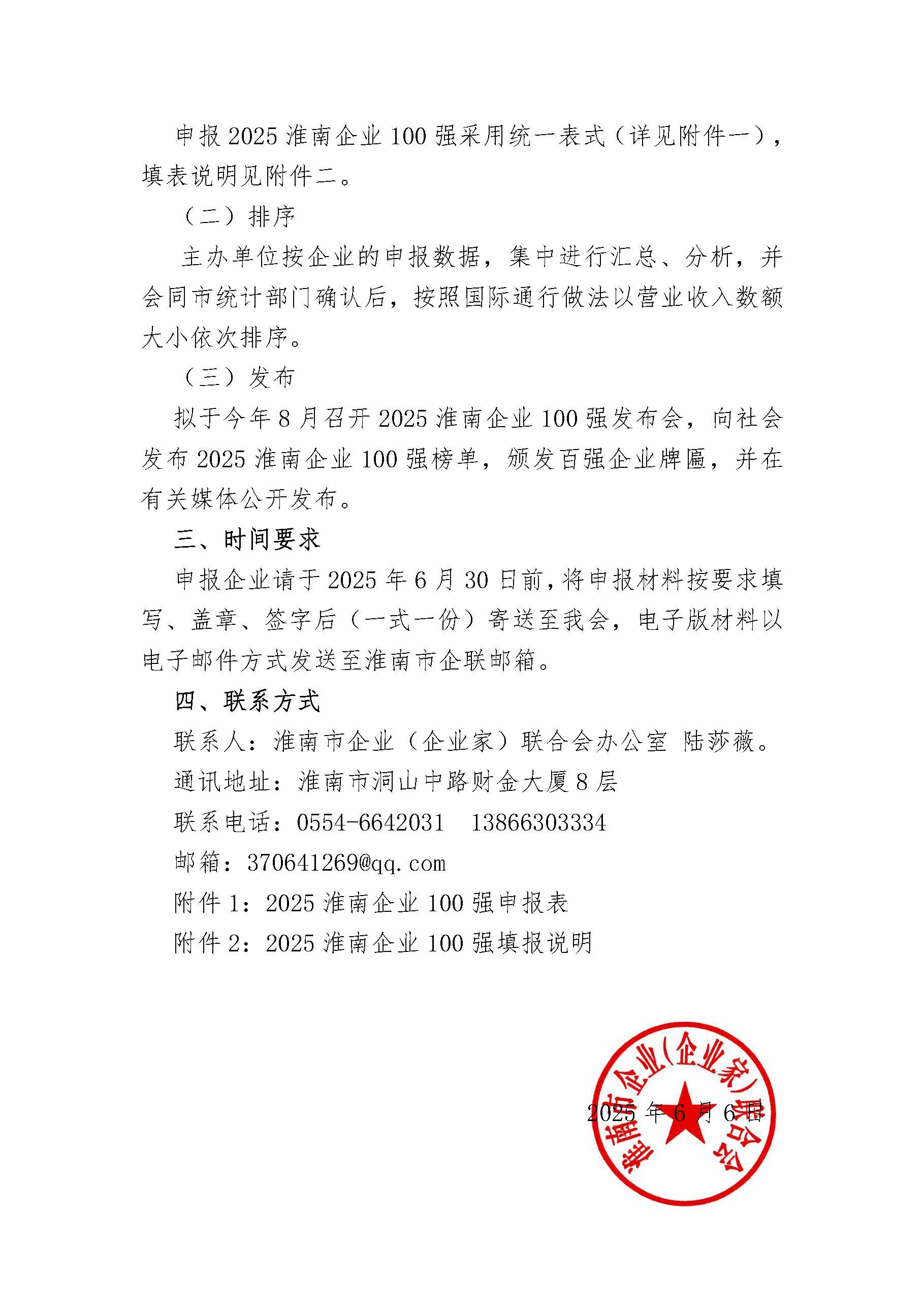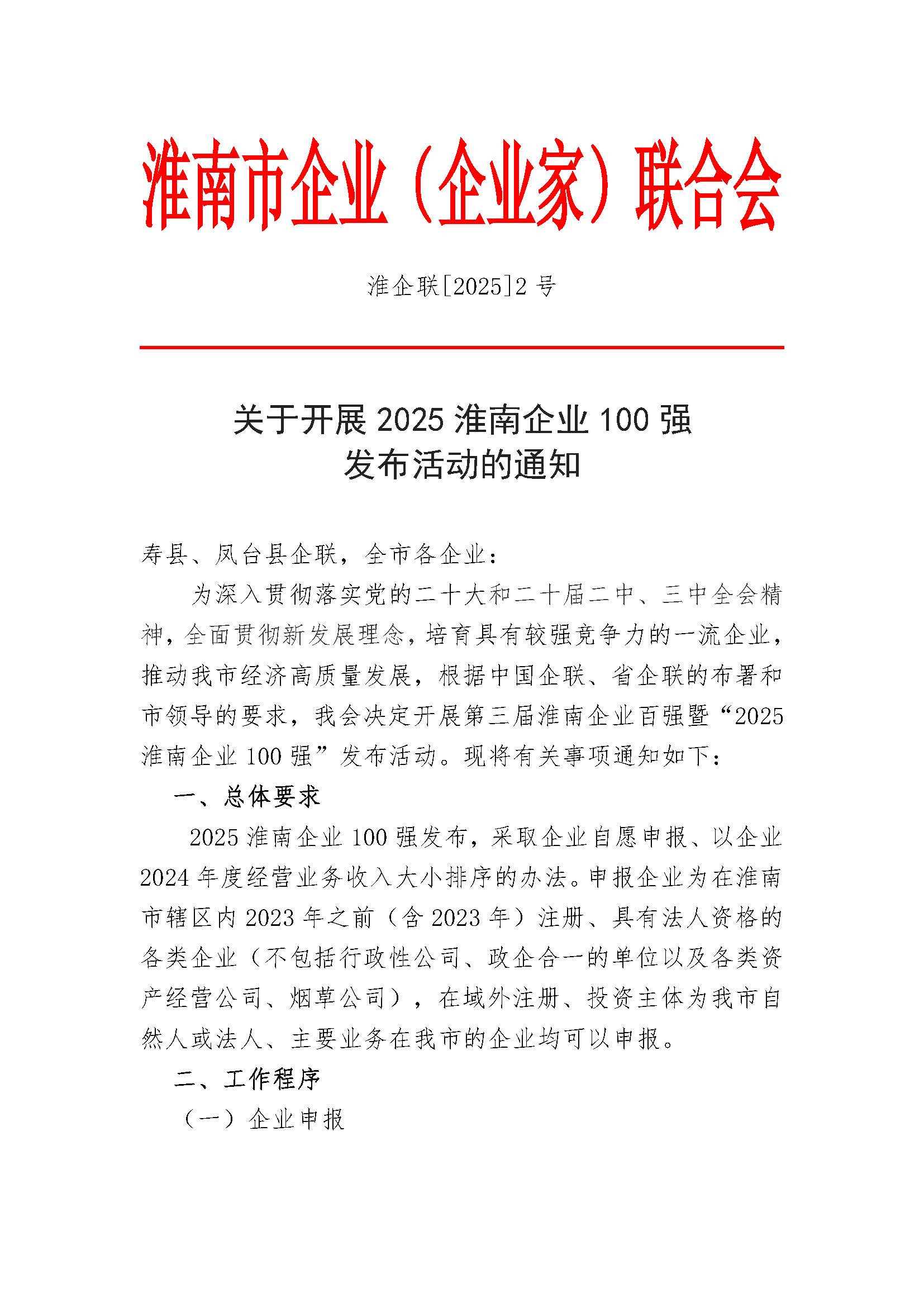 关于开展2025淮南企业100强发布活动的通知