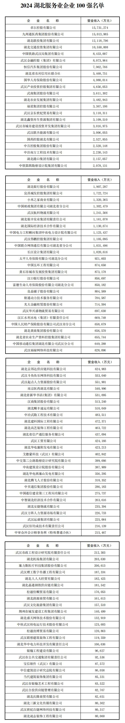 2024湖北服务业企业100强