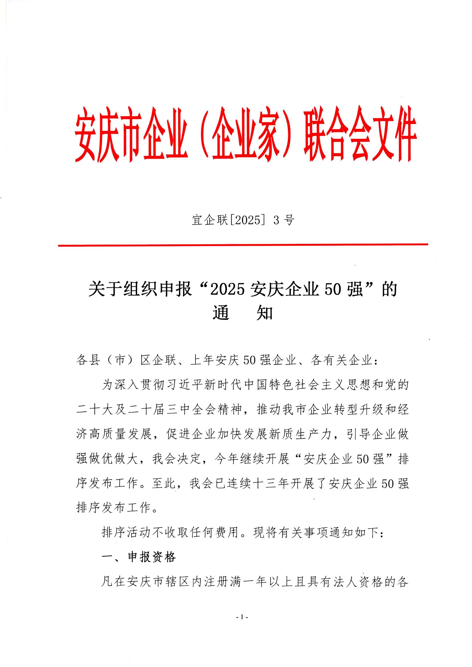 申报2025安庆企业50强通知