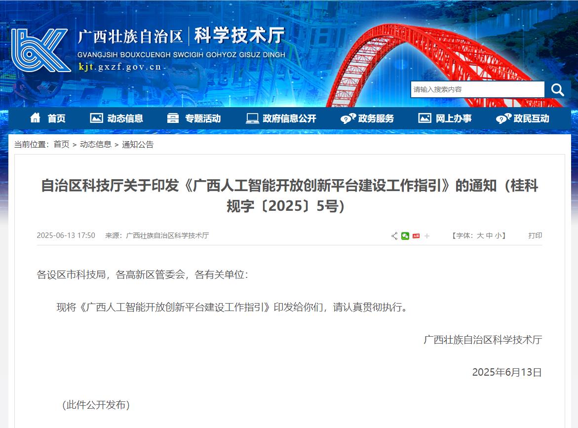 6月16日,《广西人工智能开放创新平台建设工作指引》近日正式发布。