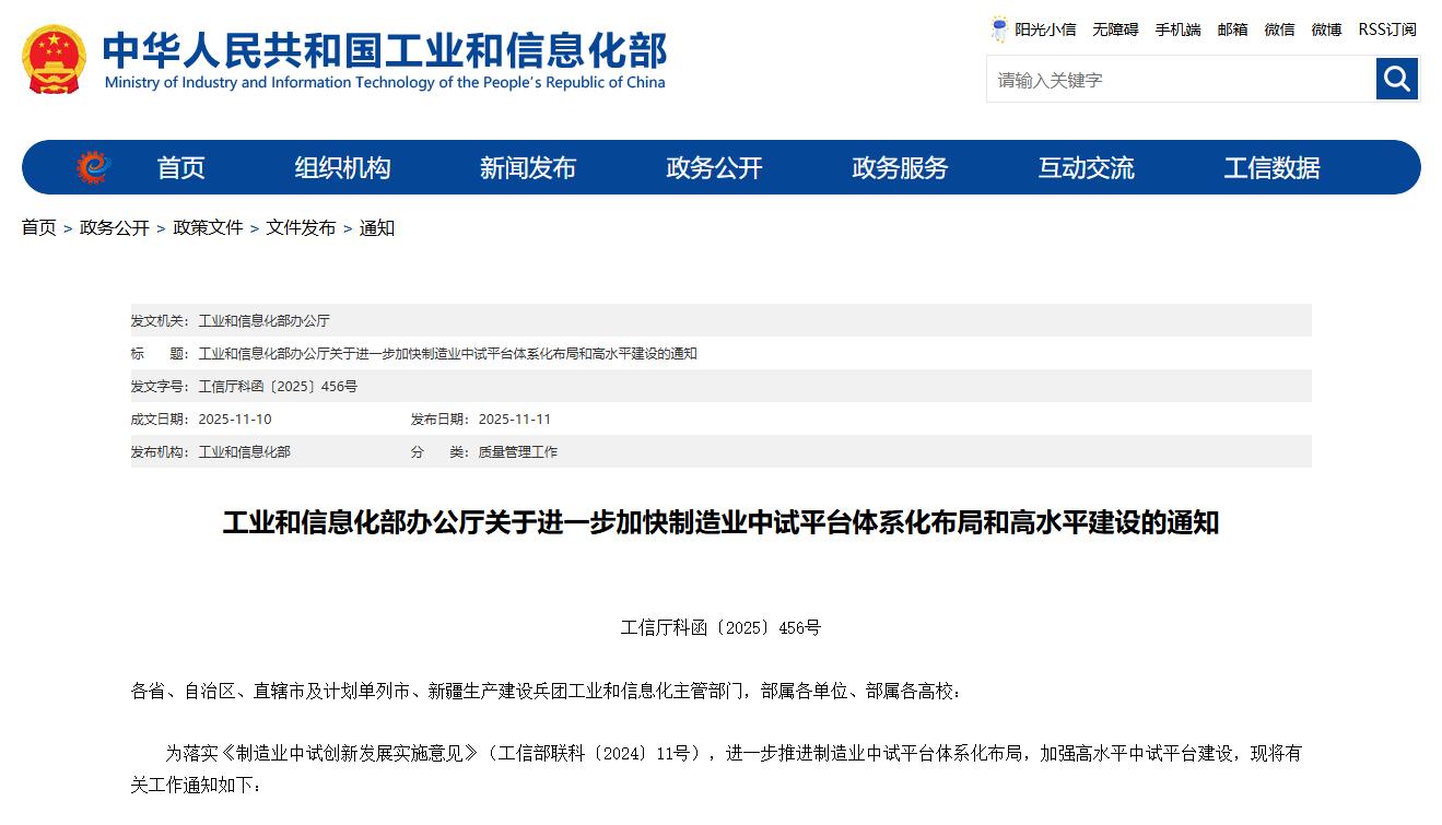 从工业和信息化部获悉,日前我国发布《关于进一步加快制造业中试平台体系化布局和高水平建设的通知》,到2027年,高水平中试平台力量进一步壮大,现代化中试平台体系基本建立,多主体参与、多领域布局、多层次服务的全国制造业中试服务网络初步形成。