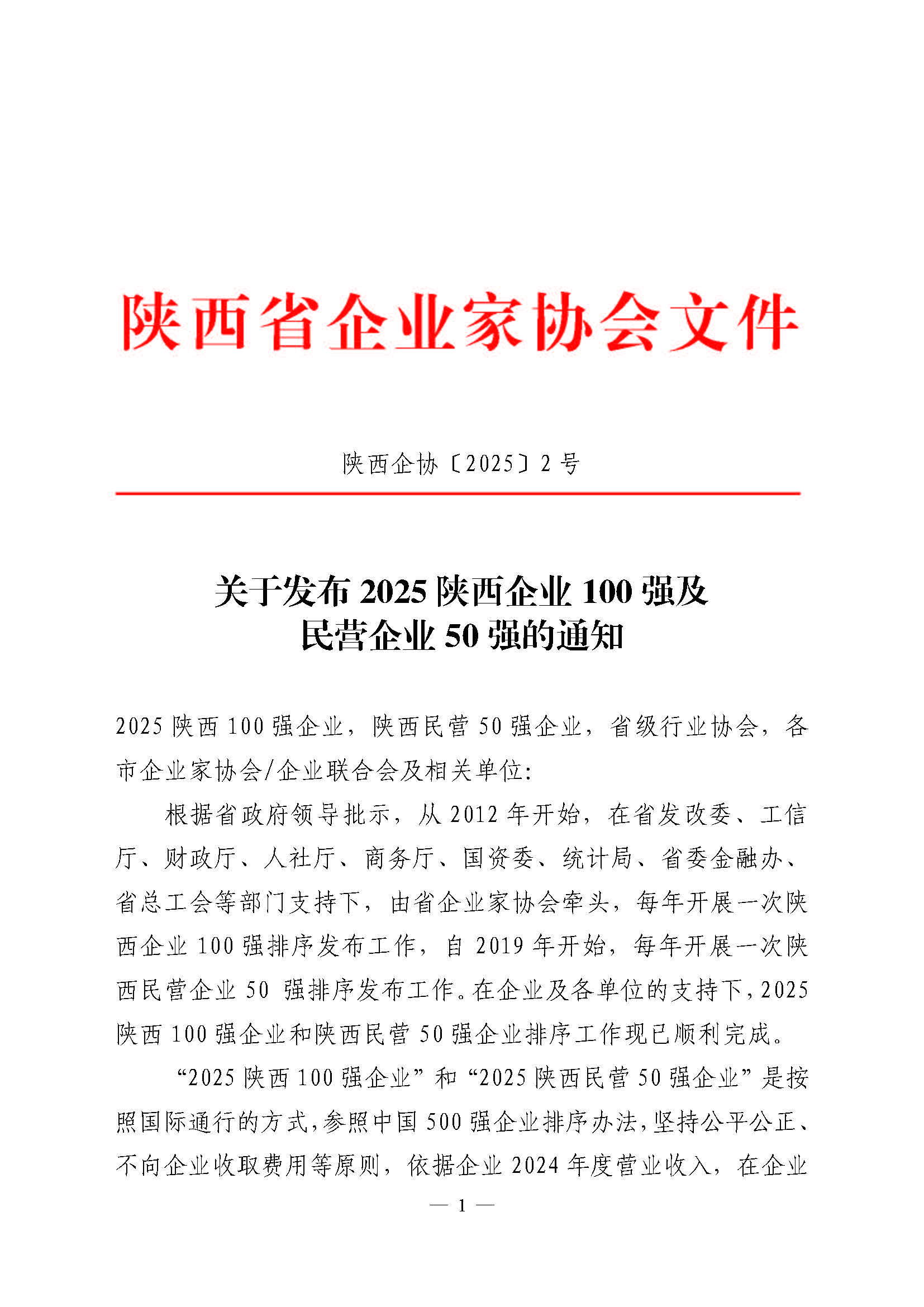 关于发布2025陕西企业100强及民营企业50的通知