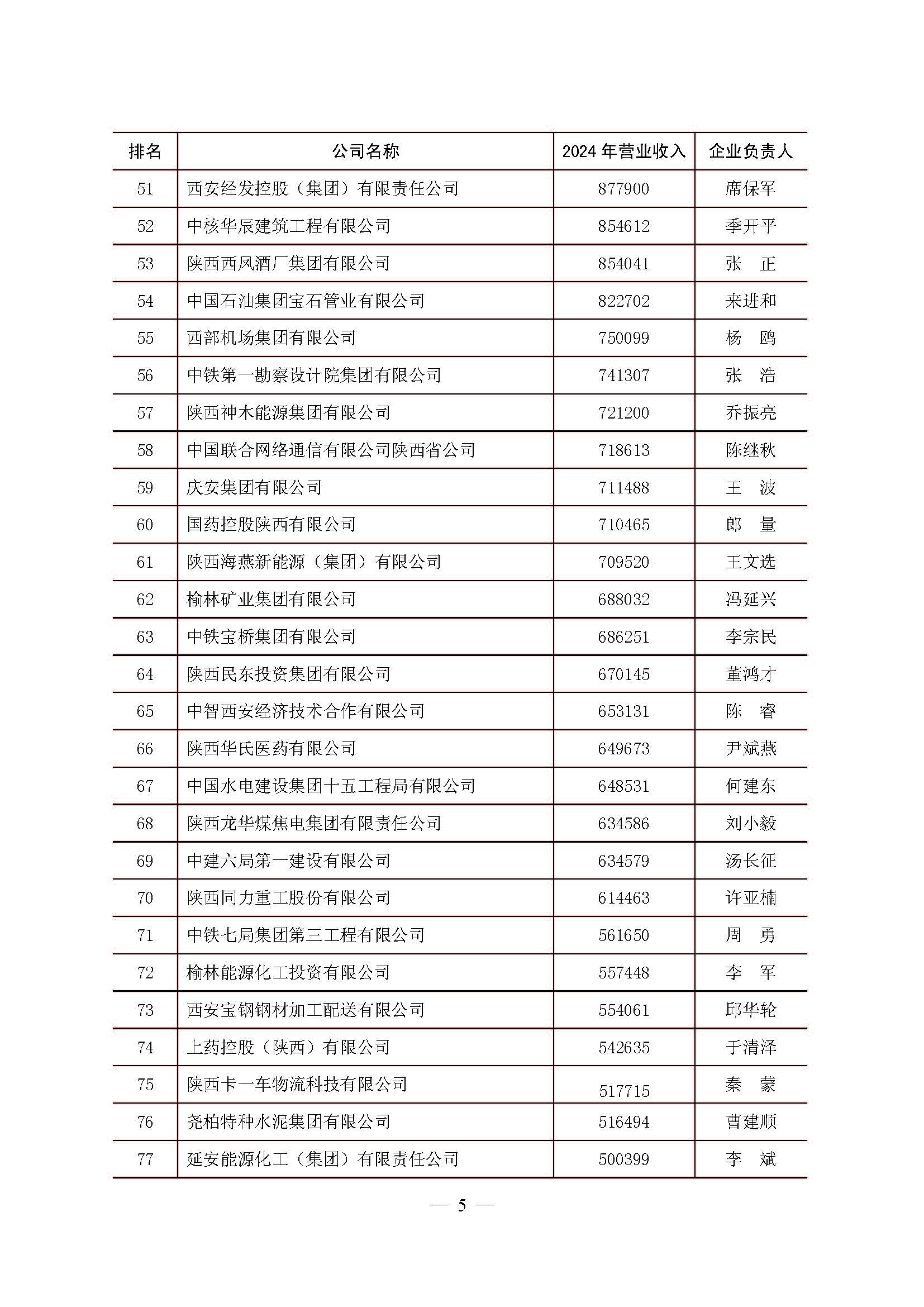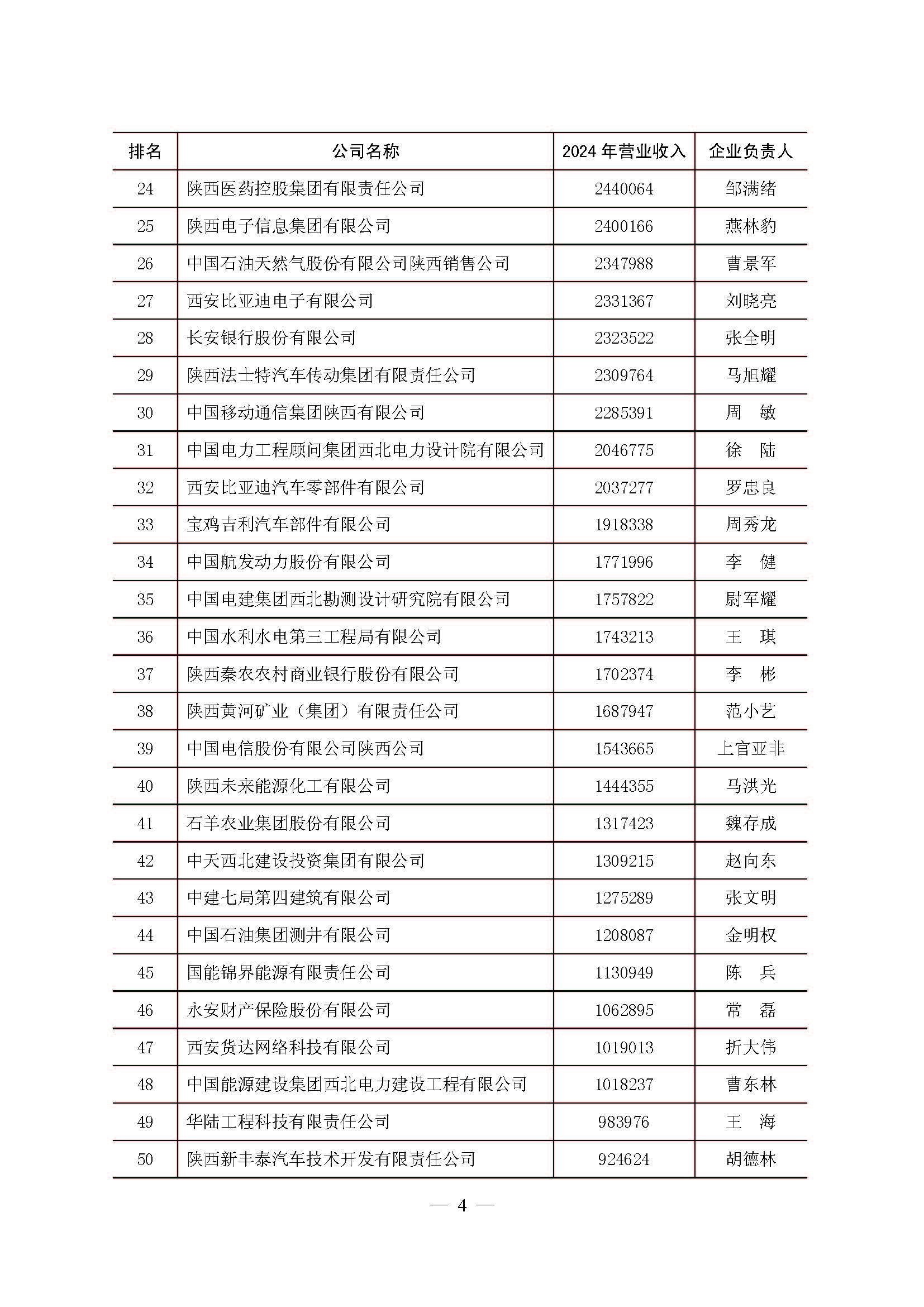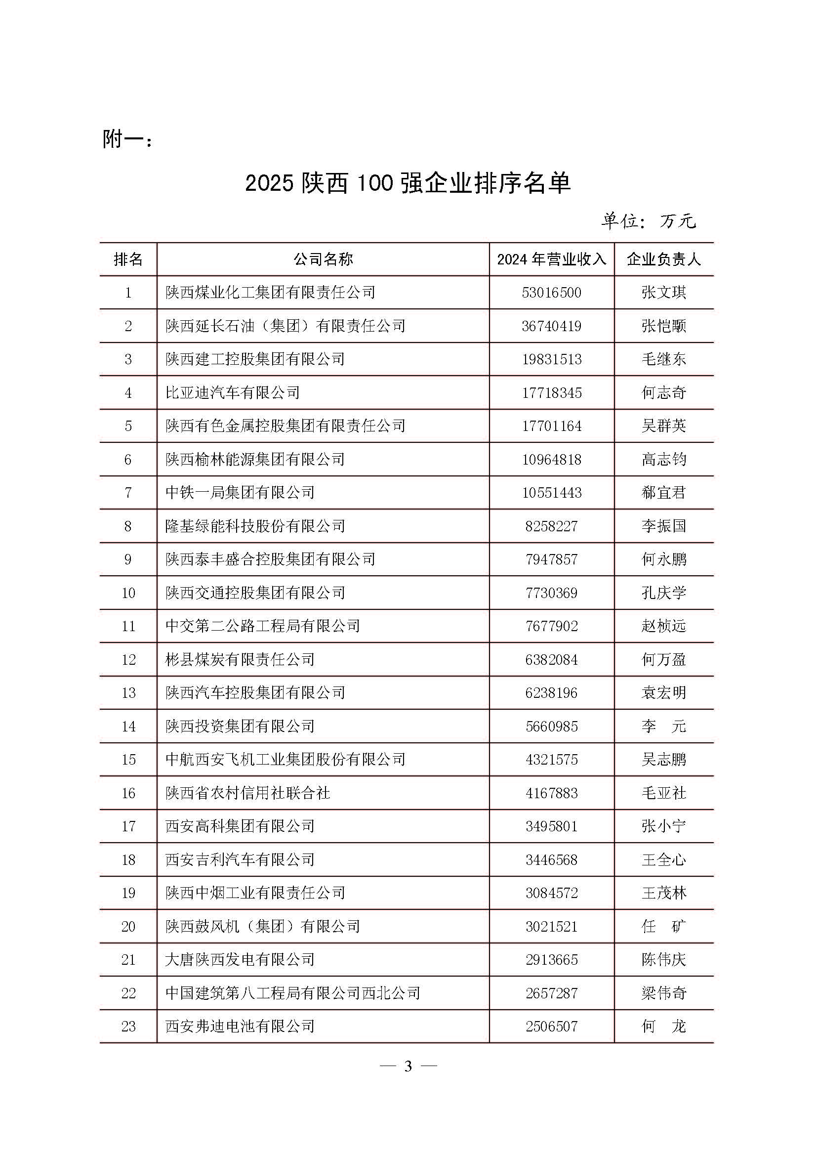 2025陕西100强企业排序发布