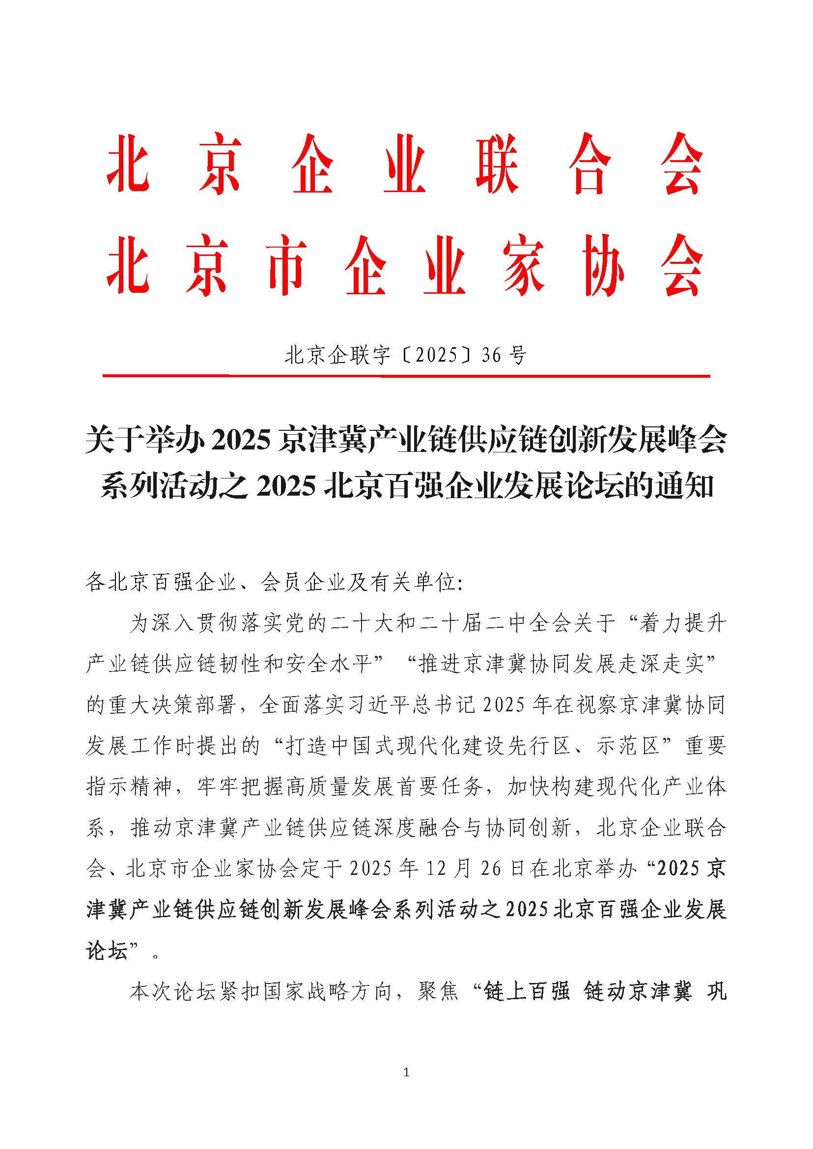 关于召开2025北京百强企业发展论坛的通知