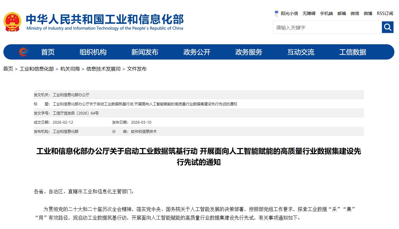 工业和信息化部10日对外发布《关于启动工业数据筑基行动