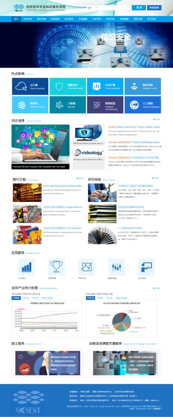 3.新增院士服务模块:面向用户发布信息技术专业知识服务系统针对中国工程院院士个性化定制的专题服务精华内容,支持全文获取;