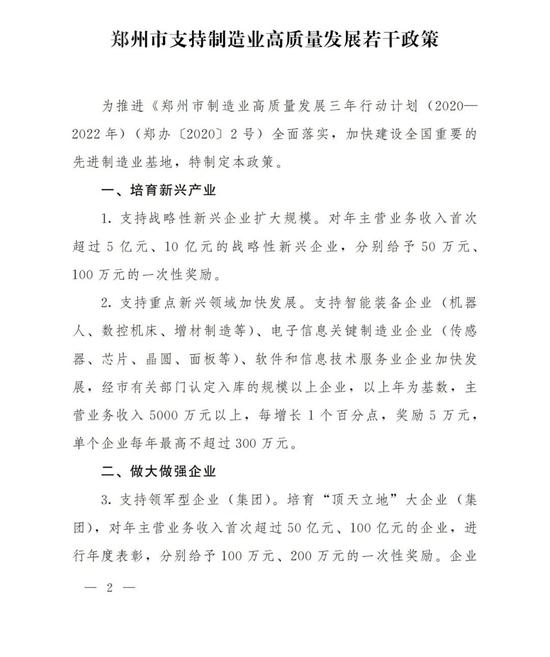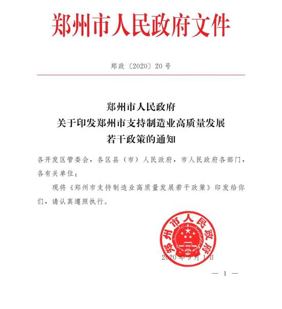 加快建设全国重要的先进制造业基地,郑州市政府日前印发《关于印发郑州市支持制造业高质量发展若干政策的通知》(以下简称政策),政策包括7个部分、26条。