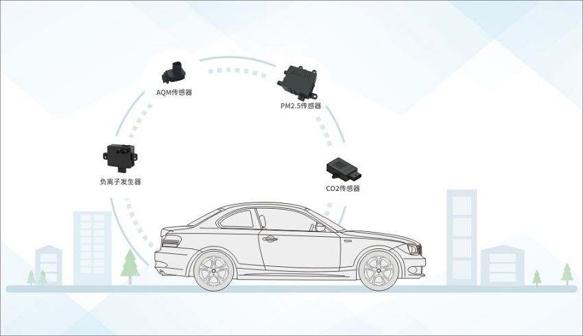 在车内空气净化系统中,车载空气净化器通过搭载气体传感器对车舱内空气中的污染物进行实时监测,进而可以通过内外循环换气、滤网过滤、负离子除尘、等离子杀菌等手段有效实现空气净化。四方光电从2014年立项启动车用空气品质传感器的开发,目前已有PM2.5、CO2、AQS等全系列车用空气品质检测气体传感器产品线,以及负离子及等离子发生器、香氛发生器等改善车舱空气质量及提升舒适度的产品,形成了从检测到处理的应用闭环,为OEM主机厂带来一站式解决方案。