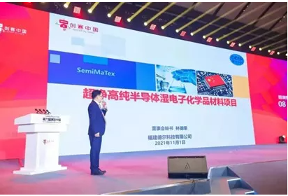 超净高纯半导体湿电子化学品材料项目”从全国3万多个项目中脱颖而出,经过现场11位专家评委现场评议,最终以总分第一名811分成绩荣获企业组一等奖,创福建省历史最好成绩,获得省、市、县政府及主管部门和领导的高度赞扬!