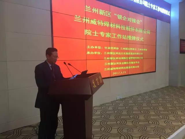 3月23日,兰州威特焊材科技股份有限公司院士专家工作站在兰州新区孵化大厦正式揭牌,兰州理工大学副校长李仁年、兰州新区管委会副主任陈子云、甘肃省发改委经动办主任田耀峰、兰州经济技术开发区副主任郭新忠、兰州市科协党组书记、主席谭生龙等省市领导出席会议。