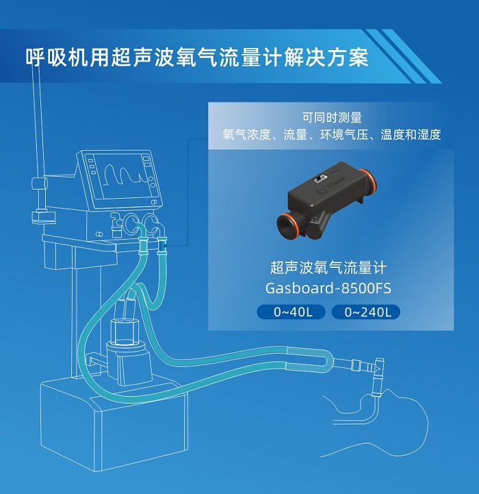 四方光电在健康医疗领域推出的Gasboard-8500FS超声波氧气流量计,可同时检测氧气的浓度、流量、压力、温度和湿度等指标,并通过串口或模拟信号输出。传感器具有生命周期内无零点漂移、响应快速、稳定性好、精度高及寿命长等优势,接口按照ISO 5356设计,采用密封圈方式,更好的满足客户的安装使用需求。目前Gasboard-8500FS流量可达240L/min,满足呼吸机、麻醉机、高流量湿化治疗仪等呼吸医疗设备的应用需求。
