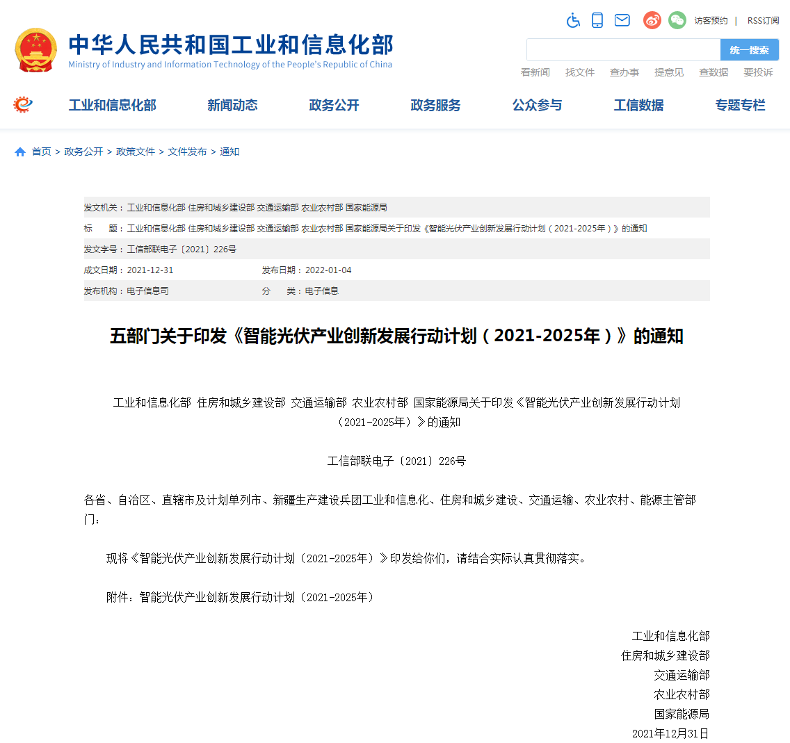 工信部等5部门印发《智能光伏产业创新发展行动计划(2021-2025年)》