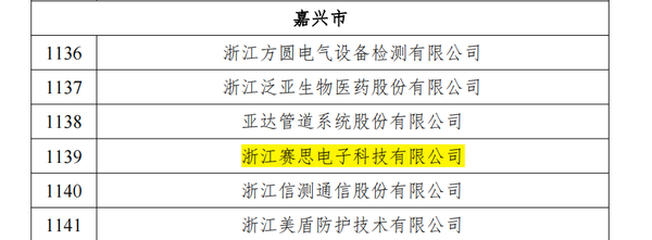 根据浙江省经济和信息化厅于近日发布的《浙江省经济和信息化厅关于公布2021年度浙江省“专精特新”中小企业名单的通知》,赛思被认定为2021年度浙江省“专精特新”中小企业(有效期为3年,自2021年12月起算)。