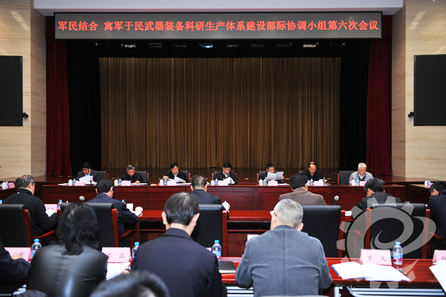 2017年4月1日,军民结合、寓军于民武器装备科研生产体系建设部际协调小组第六次会议在京召开。会议审议并原则通过《国务院 中央军委关于建立和完善军民结合 寓军于民武器装备科研生产体系的若干意见》(下称《若干意见》)2016年工作进展情况和2017年工作要点。