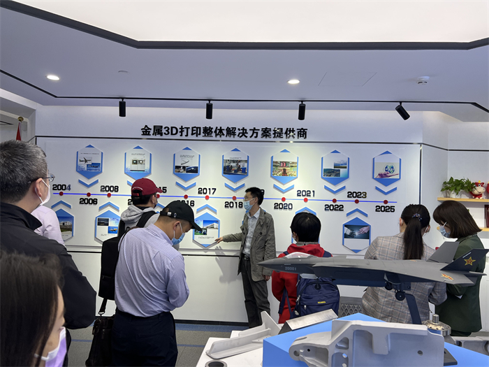 鑫精合销售副总李语林进一步介绍了公司的产品服务、核心优势:“鑫精合产品和技术主要分为标准化增材制造产品、定制化增材制造产品、工艺开发、售后服务四个板块,其中,设备可高度定制化是我们的核心竞争力。”