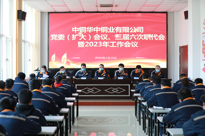 2023年1月12日,公司召开党委(扩大)会议、三届六次职代会暨2023年工作会议,认真总结2022年工作成果,深入分析面临的问题形势,安排部署2023年重点工作。会议团结动员全体员工干部坚持以习近平新时代中国特色社会主义思想为指导,全面贯彻党的二十大精神和中央经济工作会议精神,学习贯彻中铝集团、中国铜业2023年工作会议精神,确保改革高质量收官,为中国铜业建设具有全球竞争力的世界一流铜铅锌企业贡献华中铜业力量。