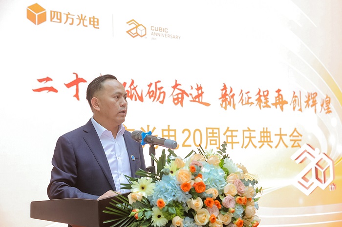 2023年5月22日,四方光电20周年庆典大会在四方光电技术中心隆重举行。四方光电董事长熊友辉博士、总经理刘志强等公司高管,以及在公司工作满3年以上的员工代表参加了本次大会,大会由总经理刘志强主持。