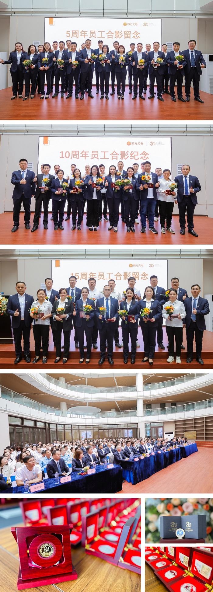 为庆祝公司成立20周年,四方光电在近一个月内举行了健康跑、嘉善工业园开业、龙舟赛等一系列活动。通过这些活动,四方光电不仅增强了员工的凝聚力和向心力,也塑造了公司的品牌形象与社会影响力。今天,我们隆重举行20周年庆典,回顾公司的发展历程,感谢所有为公司奋斗过的员工和合作伙伴,展望公司的发展前景,激发公司的创新动力和发展潜力。