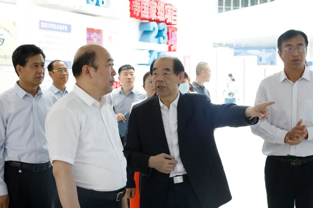在氟基新材料产业研究院展厅,董事长李世江汇报了多氟多以氟为基,专注氟材料领域研究,与国家发展同频共振形成23个国家级项目,依次介绍了氟基新材料、电子信息材料、前沿新材料、新能源材料和新能源电池的研发与产业化情况,并重点介绍了在产品研发和产业化基础上公司走出的技术专利化、专利标准化、标准国际化的国际标准制修订情况。