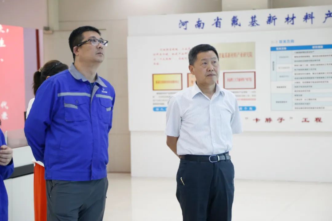 调研组一行先后参观了生产运营指挥中心、六氟磷酸锂产线、电子级氢氟酸产线、锂电池产线和氟基新材料产业研究院,深入了解了企业生产运营情况。