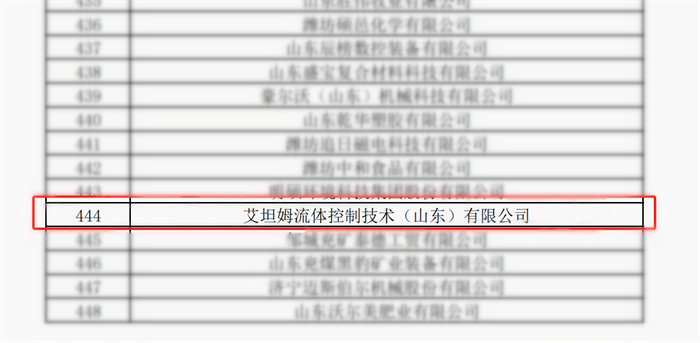 近日,由山东省工业和信息化厅根据《山东省瞪羚、独角兽企业认定管理办法》(鲁工信发〔2020〕8号)、《关于开展2023年度山东省瞪羚、独角兽企业培育认定工作的通知》等文件精神,对2023年第一批山东省瞪羚企业名单进行公示,艾坦姆流体控制技术(山东)有限公司成功被认定为2023年度山东省瞪羚企业!