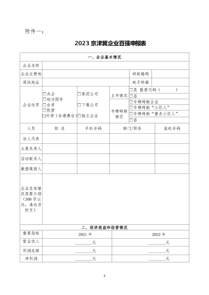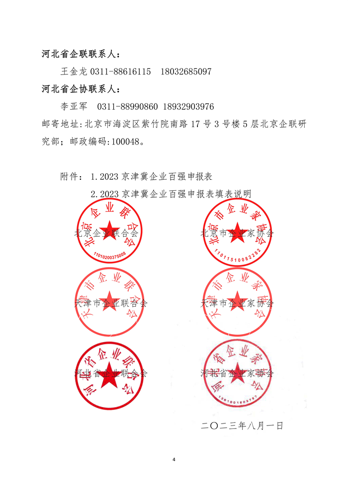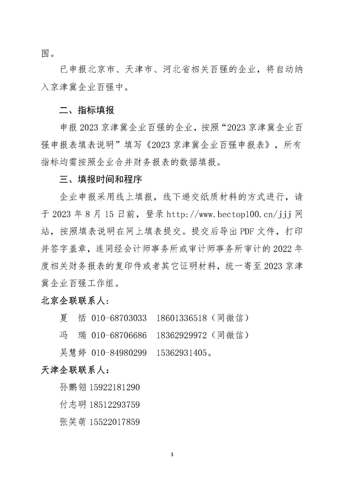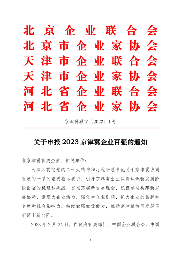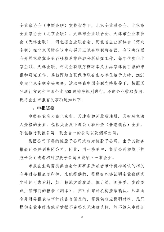 关于申报2023京津冀企业百强的通知