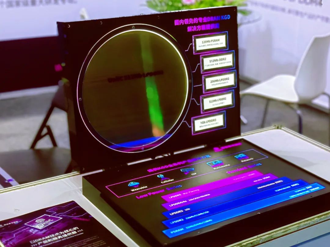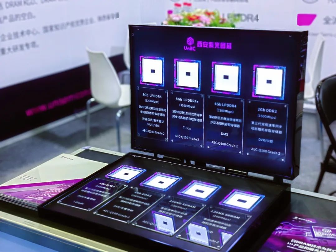 本次展出的西安紫光国芯2Gb/4Gb LPDDR4 DRAM KGD产品,可满足汽车电子系统对超低功耗、高可靠性产品的严苛要求,广泛应用于T-Box领域。
