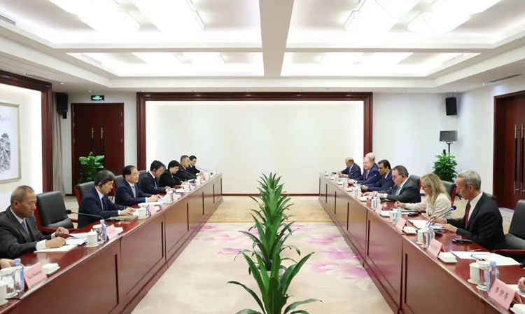 2023年8月21日,工业和信息化部部长金壮龙在北京会见美中贸易全国委员会董事会主席葛士柏率领的代表团。双方就中美产业发展合作等问题深入交换意见。