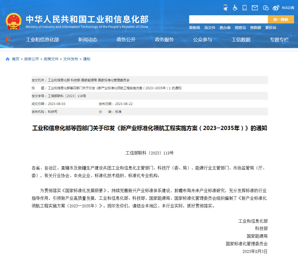 到2030年,满足新产业高质量发展需求的标准体系持续完善、标准化工作体系更加健全。到2035年,企业主体、政府引导、开放融合的新产业标准化工作体系全面形成。范书建说:“协同推进新产业发展战略、规划、政策和标准实施,强化国际标准、强制性国家标准、行业标准、团体标准的系统性和协调性,完善新产业标准全生命周期管理。”