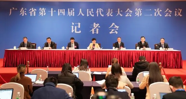 1月23日下午,广东省十四届人大二次会议召开省直部门专场记者会,省工业和信息化厅厅长涂高坤、省发展改革委副主任郭跃华、省科技厅厅长王月琴、省商务厅厅长张劲松、省市场监管局局长刘光明、省地方金融局局长于海平出席会议并答记者问。广东省人民政府新闻办公室副主任邓鸿主持本次记者会。