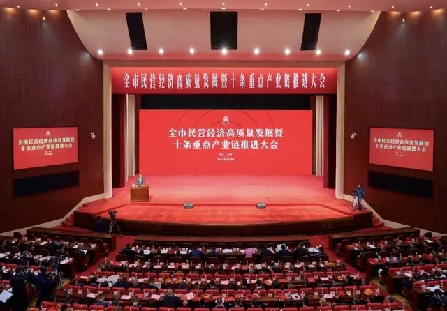 浙江金华民营经济高质量发展暨十条重点产业链推进大会现场。