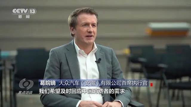 大众汽车(安徽)有限公司首席执行官 葛皖镝:借助于这个研发中心,我们希望及时回应中国消费者的需求,这意味着一方面,我们要打造大众汽车集团首个专属中国市场的电动汽车平台 另外一方面,我们希望将其开发周期缩短约30%,这样才能够跟上中国市场的步伐。