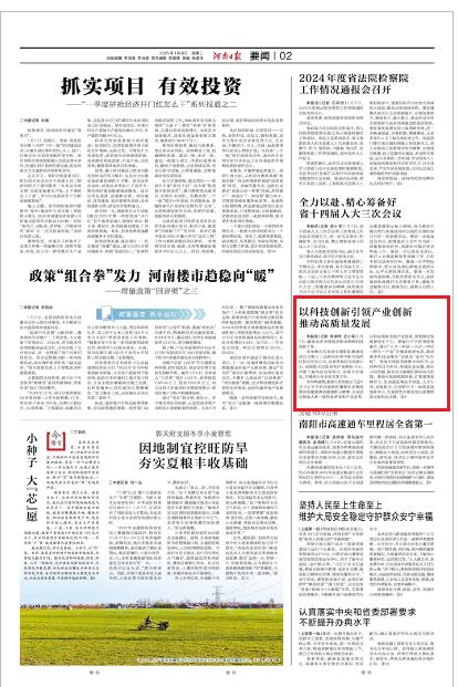 宋争辉强调,要深入贯彻落实习近平总书记关于科技创新的重要论述和视察河南重要讲话重要指示精神,主动适应和融入新一轮科技革命和产业变革,以科技创新引领产业创新,因地制宜发展新质生产力。要强化产学研用深度融合,建立“人才—科研—小试—中试—孵化—产业”全链条创新体系,推动更多科技成果从“实验室”走向“应用场”。要强化创新资源整合和应用,以科研项目为牵引,构建企业出题、校企共同答题、联合攻关解题的协同攻关机制。要强化体制机制创新,汇聚要素保障合力,加快建设集技术研发、人才引育、成果转化、企业孵化于一体的高端创新平台,为新时代中原更加出彩提供坚实的科技支撑。