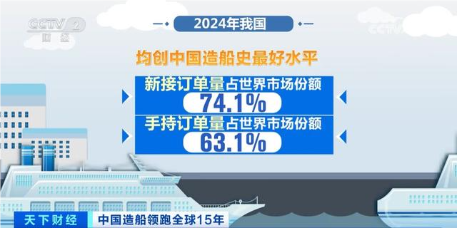 数据显示,2024年我国造船完工量、新接订单量和手持订单量以载重吨计,分别占全球总量的55.7%、74.1%和63.1%。其中,新接订单量和手持订单量均为我国造船史上最好水平。