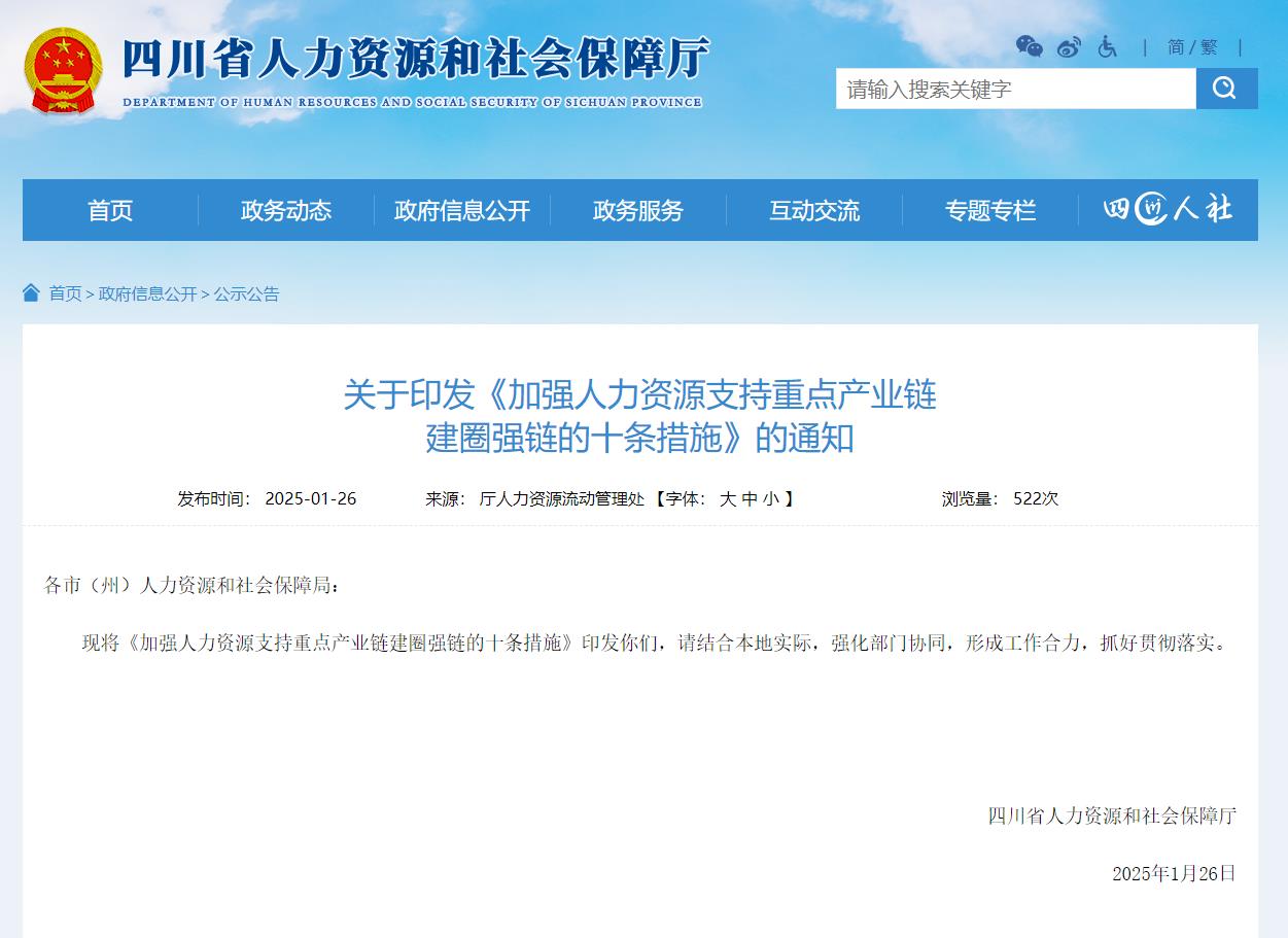 2月5日,从人力资源社会保障厅获悉,该厅近日印发《加强人力资源支持重点产业链建圈强链的十条措施》,为重点产业链强化人才支撑保障、助力企业降本增效。
