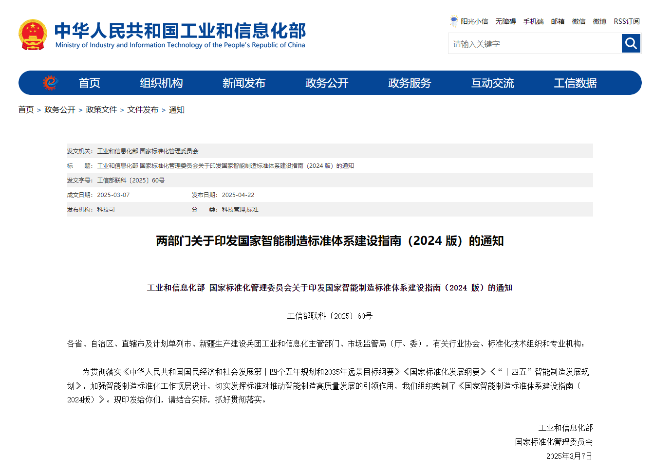 据悉,2015年以来,工业和信息化部会同国家标准化管理委员会等部门,统筹推进智能制造标准化工作,迭代发布四版《国家智能制造标准体系建设指南》。截至目前,我国累计发布智能制造国家标准472项、国际标准50余项,支持建设135个标准应用试点项目,加速标准落地、引领产业应用、深化国际合作,为智能制造深入发展提供有力支撑。
