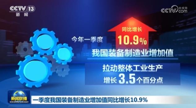 一季度我国装备制造业增加值同比增长10.9%