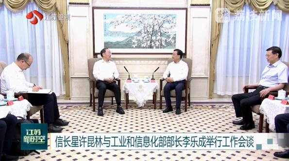 8月23日,江苏省委书记信长星、省长许昆林在南京与工业和信息化部部长李乐成举行工作会谈。