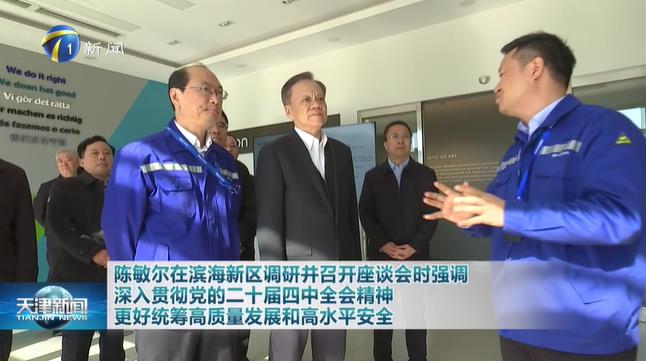 10月27日,天津市委书记陈敏尔前往滨海新区,深入南港工业区企业调研,向基层一线职工宣讲党的二十届四中全会精神。他强调,要认真学习贯彻党的二十届四中全会精神,深入贯彻落实习近平总书记视察天津重要讲话精神,坚持智能化、绿色化、融合化方向,构建以先进制造业为骨干的现代化产业体系,更好统筹高质量发展和高水平安全,为坚决实现我市全年经济社会发展目标作出贡献