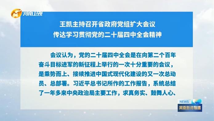 10月27日,河南省长、省政府党组书记王凯主持召开省政府党组扩大会议,传达学习贯彻党的二十届四中全会精神。
