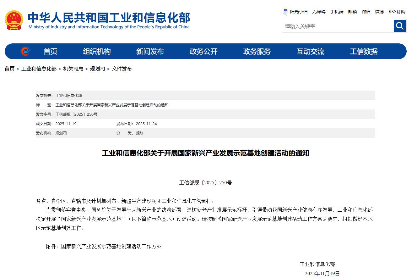 工业和信息化部近日印发通知,启动国家新兴产业发展示范基地(以下简称示范基地)创建工作。