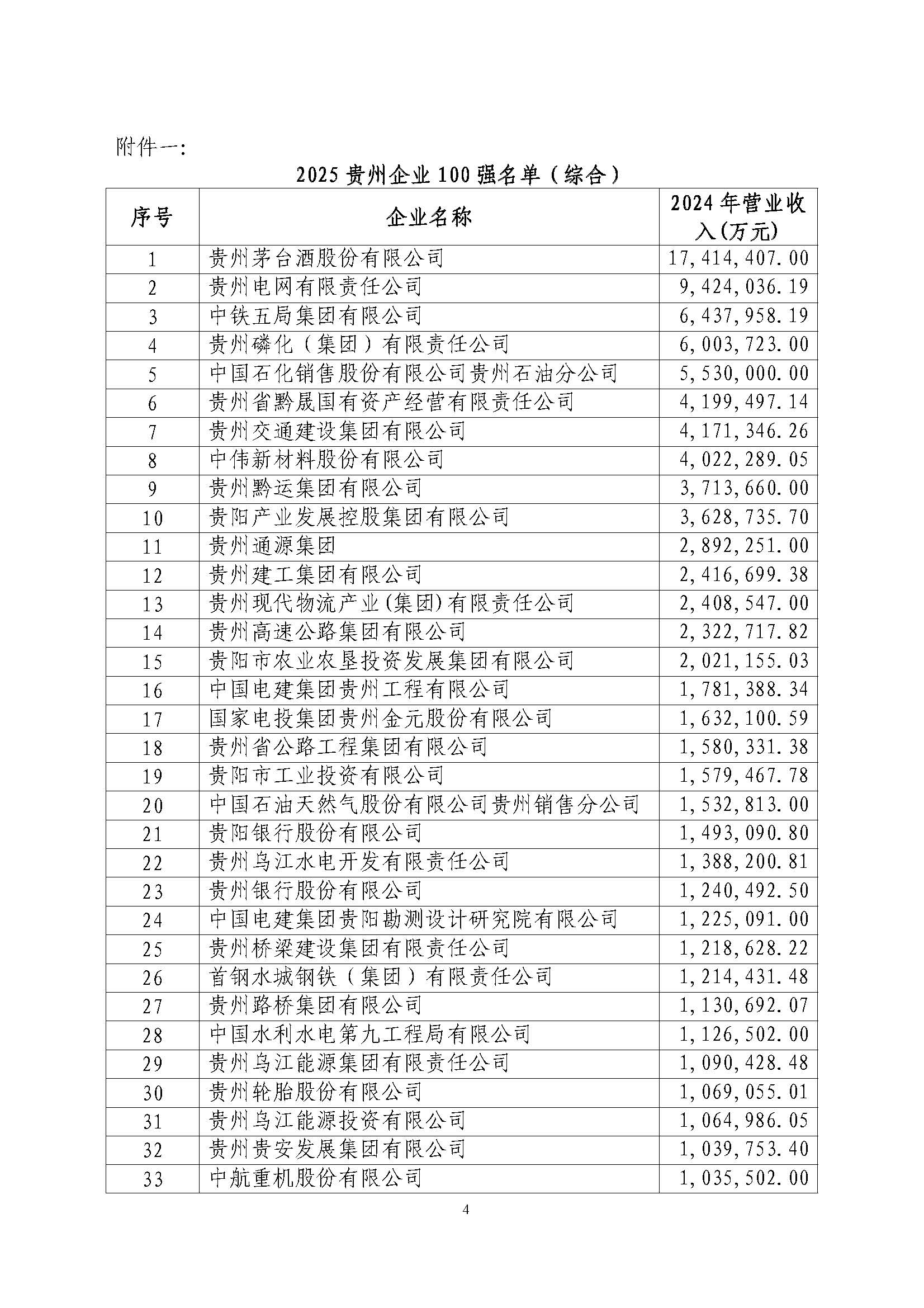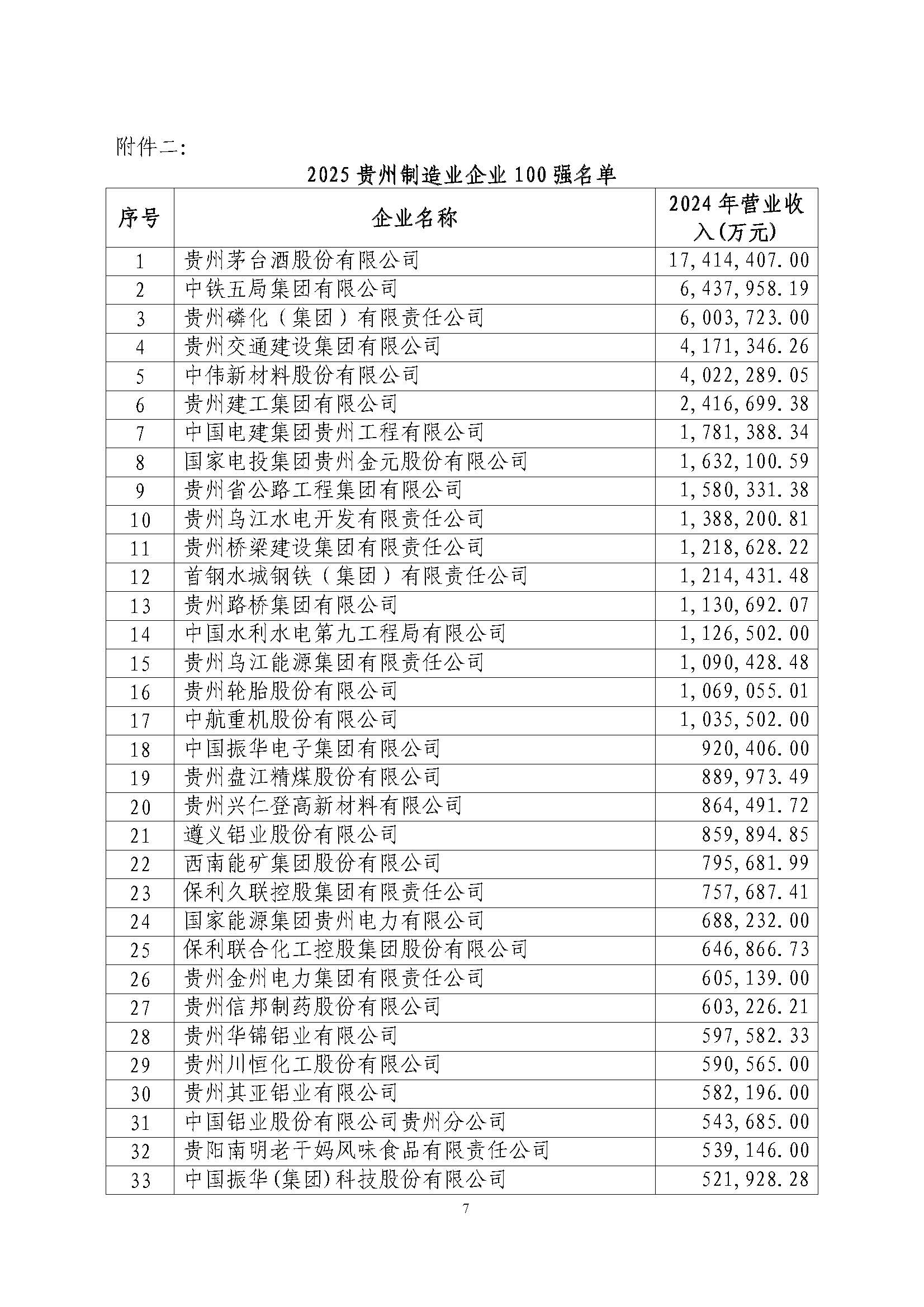 关于公布2025贵州企业100强的通知