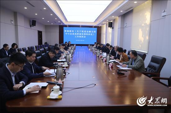 12月1日,淄博市人大常委会召开贯彻落实《关于促进金融支持中小企业高质量发展的决定》工作座谈会。市人大常委会主任孙庆雷、副主任许冰,副市长胡晓鸿,市人大常委会秘书长王龙辉出席会议。