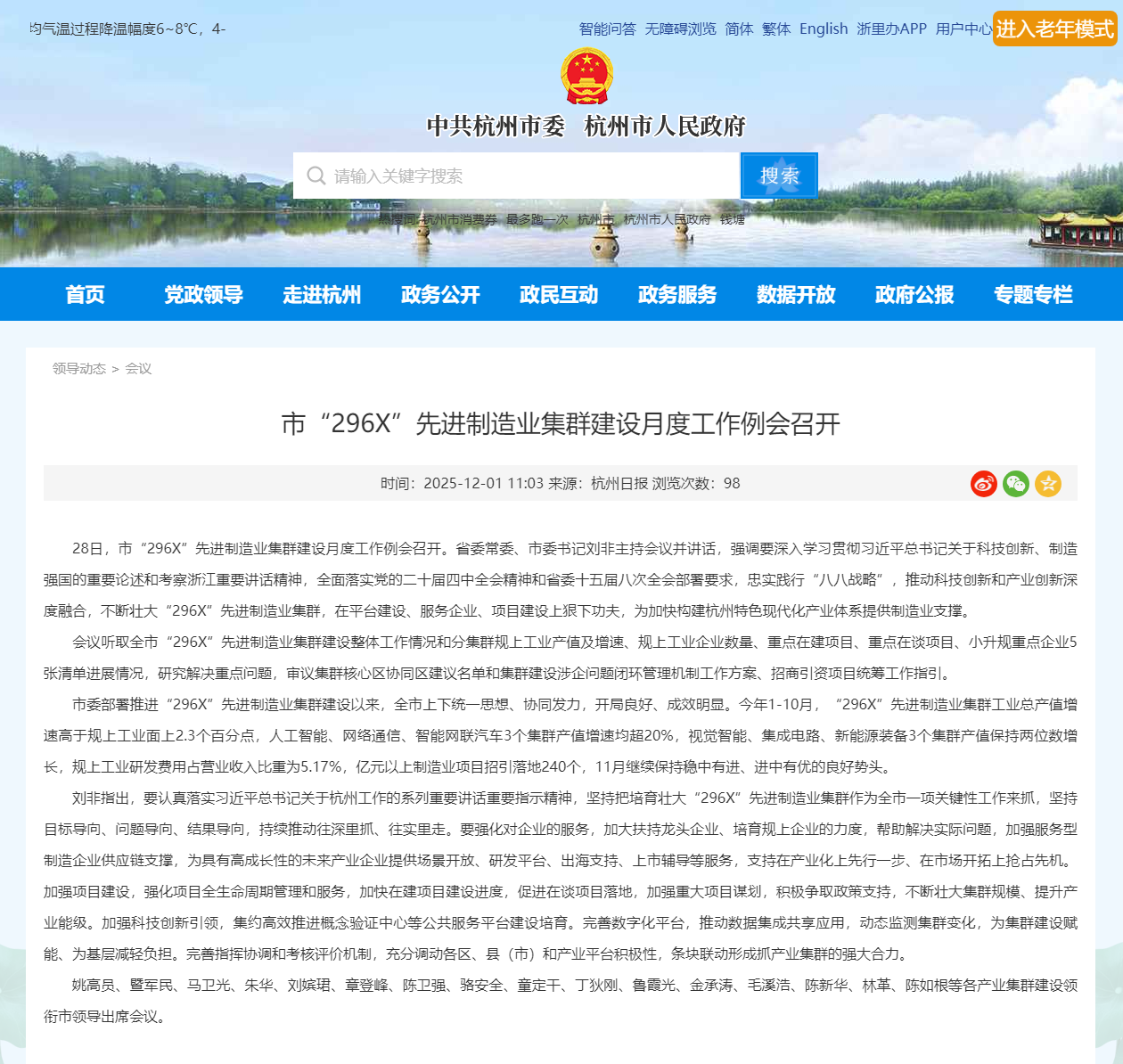 刘非指出,要认真落实习近平总书记关于杭州工作的系列重要讲话重要指示精神,坚持把培育壮大“296X”先进制造业集群作为全市一项关键性工作来抓,坚持目标导向、问题导向、结果导向,持续推动往深里抓、往实里走。要强化对企业的服务,加大扶持龙头企业、培育规上企业的力度,帮助解决实际问题,加强服务型制造企业供应链支撑,为具有高成长性的未来产业企业提供场景开放、研发平台、出海支持、上市辅导等服务,支持在产业化上先行一步、在市场开拓上抢占先机。加强项目建设,强化项目全生命周期管理和服务,加快在建项目建设进度,促进在谈项目落地,加强重大项目谋划,积极争取政策支持,不断壮大集群规模、提升产业能级。加强科技创新引领,集约高效推进概念验证中心等公共服务平台建设培育。完善数字化平台,推动数据集成共享应用,动态监测集群变化,为集群建设赋能、为基层减轻负担。完善指挥协调和考核评价机制,充分调动各区、县(市)和产业平台积极性,条块联动形成抓产业集群的强大合力。