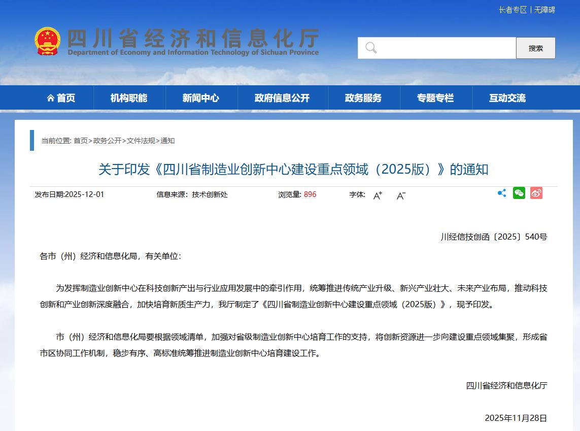 近日,《四川省制造业创新中心建设重点领域(2025版)》印发,明确将聚焦20个重点领域及技术难点进行布局,为全省制造业创新中心培育建设绘制了清晰的攻坚“路线图”。