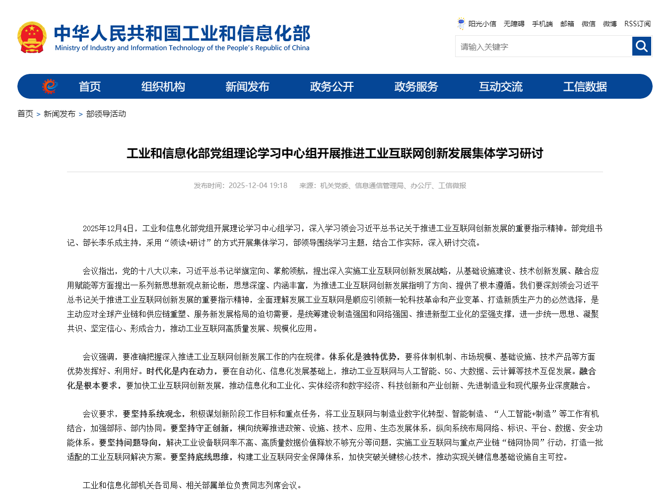 12月4日,工业和信息化部党组开展理论学习中心组学习。会议指出,发展工业互联网是顺应引领新一轮科技革命和产业变革、打造新质生产力的必然选择,是主动应对全球产业链和供应链重塑、服务新发展格局的迫切需要,是统筹建设制造强国和网络强国、推进新型工业化的坚强支撑。