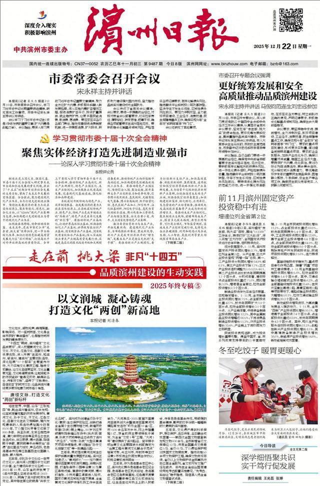 征程浩浩再跨越,使命昭昭续新篇。未来五年,是我市坚定扛牢“走在前、挑大梁”使命担当,进一步全面深化改革、加快打造绿色低碳高质量发展先行区“滨州样板”、打造高水平对外开放新高地的重要阶段。全市上下要深入学习贯彻市委十届十次全会精神,推动传统产业高端化、新兴产业规模化、特色产业园区化、未来产业协同化,加快服务业优质高效发展,完善现代化基础设施,强化标准和品牌建设。