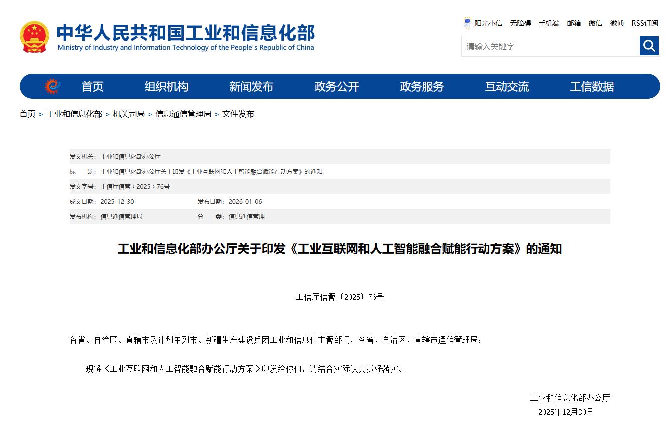 1月7日从工业和信息化部获悉,近日,工业和信息化部印发《工业互联网和人工智能融合赋能行动方案》(以下简称《行动方案》),提出到2028年,工业互联网与人工智能融合赋能水平显著提升,推动不少于50000家企业实施新型工业网络改造升级,在20个重点行业打造一批高质量数据集,培育一批智能化解决方案供应商。